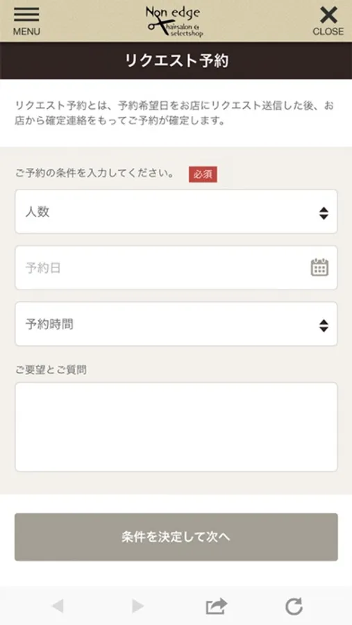 希望のメニュー・日時を指定して、リクエストを送信できます。