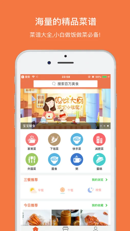 1. 数十万精品菜谱信,描述详细,图片高清,让做菜变得轻松又容易,叫你烧一手好菜!