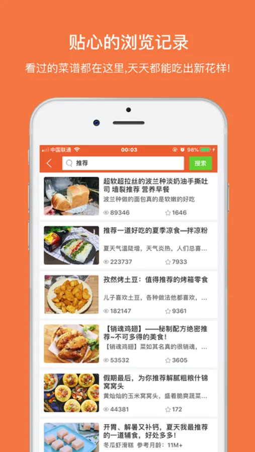 4.贴心的浏览记录,看过的菜谱都在这里,很贴心,每天都有精品好菜推荐,天天都能吃出新花样!