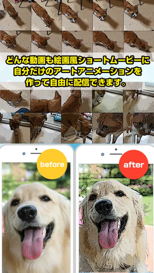 このアプリなら誰でもプロの画家になったかのようにトゥーンやスケッチの動画や写真を手軽に作成できます。