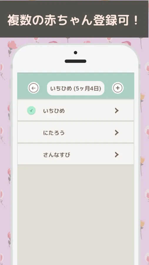 - 赤ちゃんの生年月日を登録すると、生後何日なのかが表示される