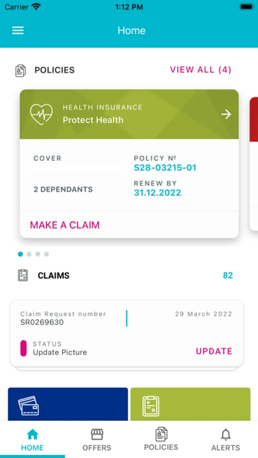 · View and monitor their Health insurance, Home insurance, Car insurance and Life policies.