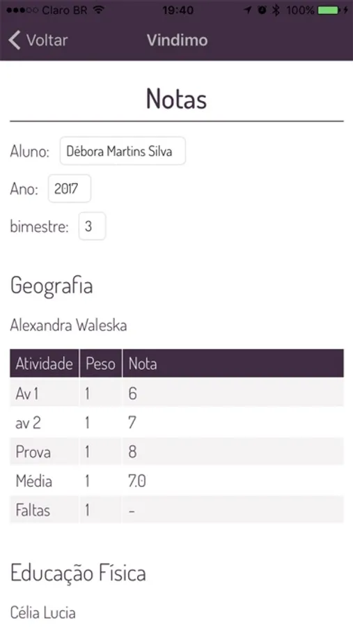 O VindimoApp disponibiliza aos pais e alunos a visualização do boletim de notas e o acompanhamento da vida acadêmica dos alunos de maneira fácil e eficiente.