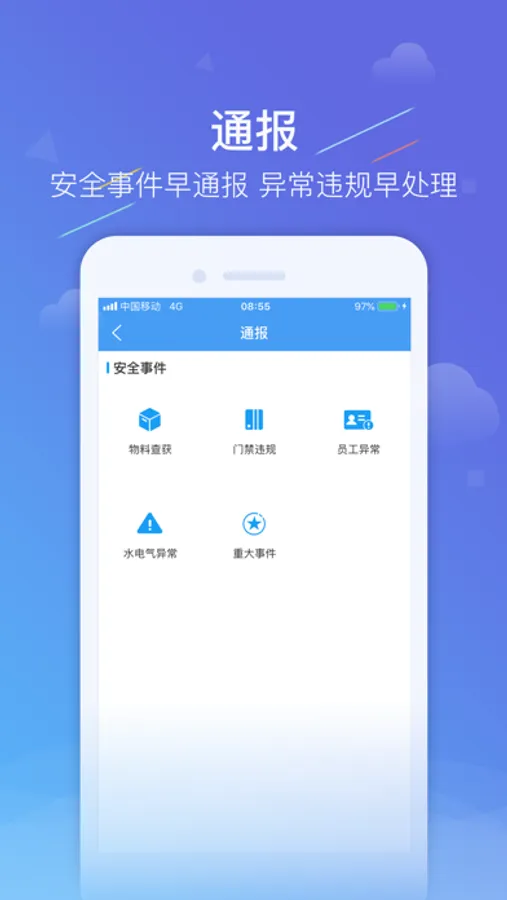 2.通報模塊包含: 物料查獲,門禁違規,員工異常,水電氣異常及重大事件,安全執勤人員在發現物料,門禁,員工,水電氣異常及重大事件時,及時通報處理.
