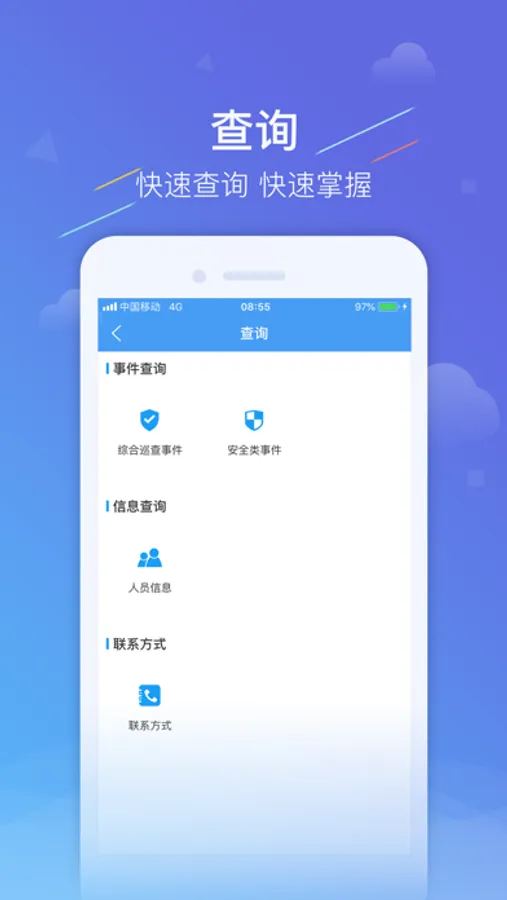 4.查詢模塊: 安全執勤人員可在此查詢已上傳數據,并可查詢各崗位及骨幹聯繫方式,方便快速聯繫相關人員.