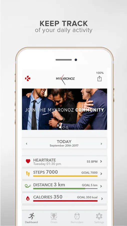 With ZeTime app, keep track of your daily activity and sleep, set personal goals to stay motivated, select notifications and information that you want to receive straight to your wrist.