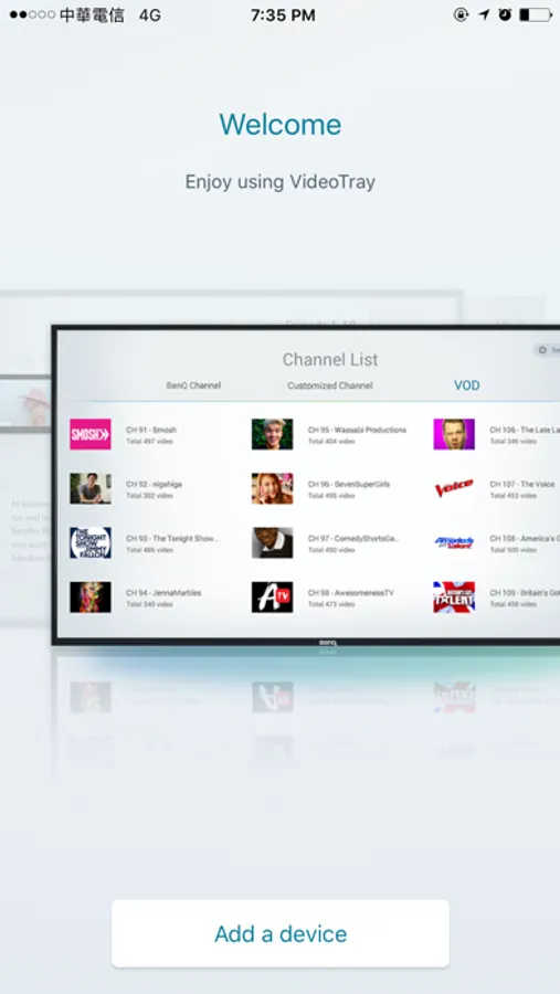BenQ Video Tray collects popular YouTube videos and sorted by Internet Famous, Music, News, Cooking, Travel, Fashion, Parenting, Movie, Entertainment, and Hobby. User channel can also be added for further cherished videos.