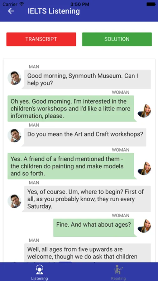 Section 3 is a conversation between up to four people set in an educational or training context (e.g. a university tutor and student discussing an assignment).