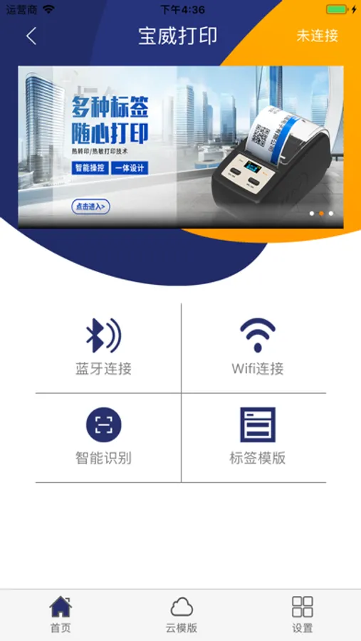 应用与宝威打印机建立连接,通过应用软件打印标签。具有标签自动识别功能,能快速编辑出标签,且能持久化保存标签样式。