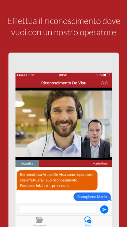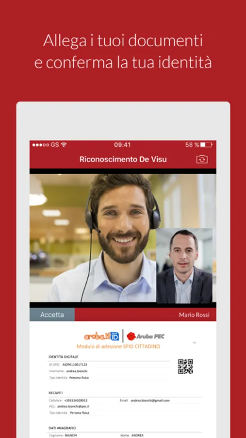 L’applicazione De Visu di Aruba PEC consente di effettuare il riconoscimento dell’identità da remoto, in collegamento audio/video con l’operatore incaricato, secondo la vigente normativa Italiana.