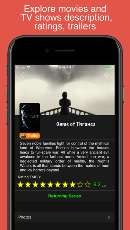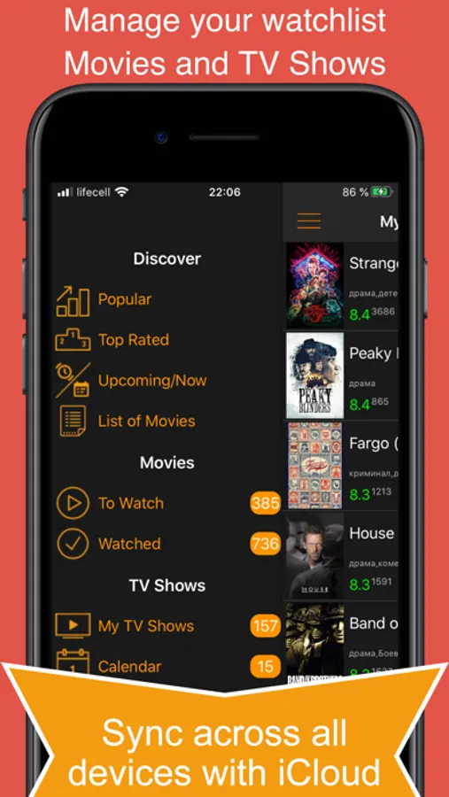 My Movies & TV Shows: Watch List - The Best way to track your favorite movies and TV Shows. Simple and convenient application for explore movies, tv shows theirs details, ratings, trailers, cast and much more in one place. Add your favorite Movies and TV Shows to the watch lists and then track the release of new episodes in the calendar and on notifications. In the application there is sync with iCloud (it works automatically).