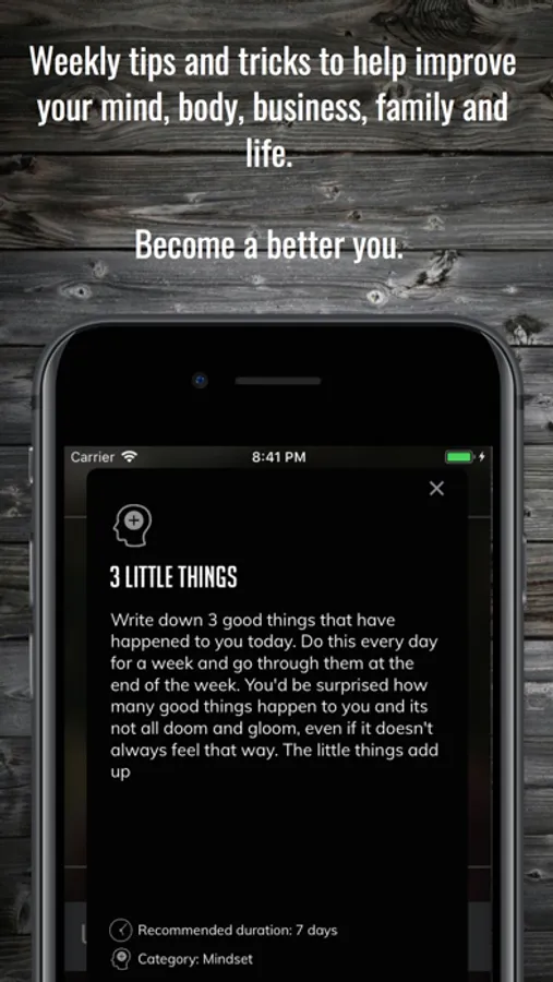 We want to make the app as social as possible, for accountability for yourself to make sure you stick to the tasks, and also to spread positive messages on social media about your progress and how far you've come. Invite your friends, share your progress, and get everyone in your circle improving their life.