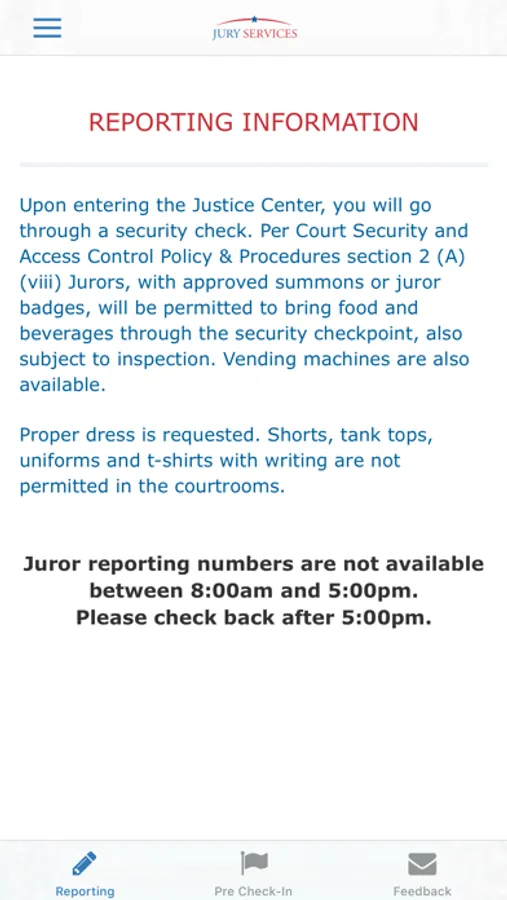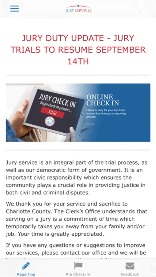 Online Check-In – We offer early online check-in and registration to save you time when arriving for Jury.