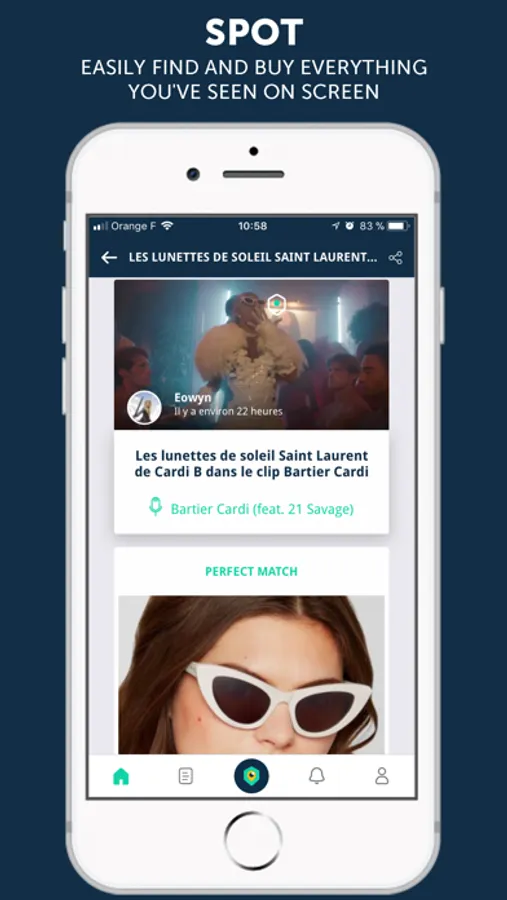 Easily find and buy everything you've seen on screen with Spotern! Apparels, jewels, accessories, decorations, cars, hight tech, filming locations… Spotern identifies for you everything appearing in your favorite movies, TV series, video clips and TV shows!