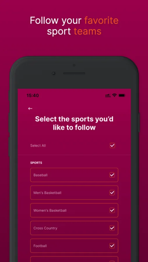 Sports events. This new mobile app features: