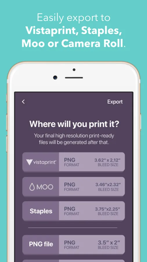 Lula Print makes it easy to export to VistaPrint, Staples or Moo. Wanna print at home? Simply choose between PNG or PDF and print using your preferred Avery template and app.