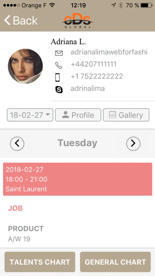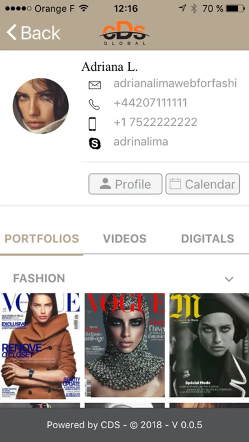 - display portfolio, videos and polaroid’s for each model/talent/artists