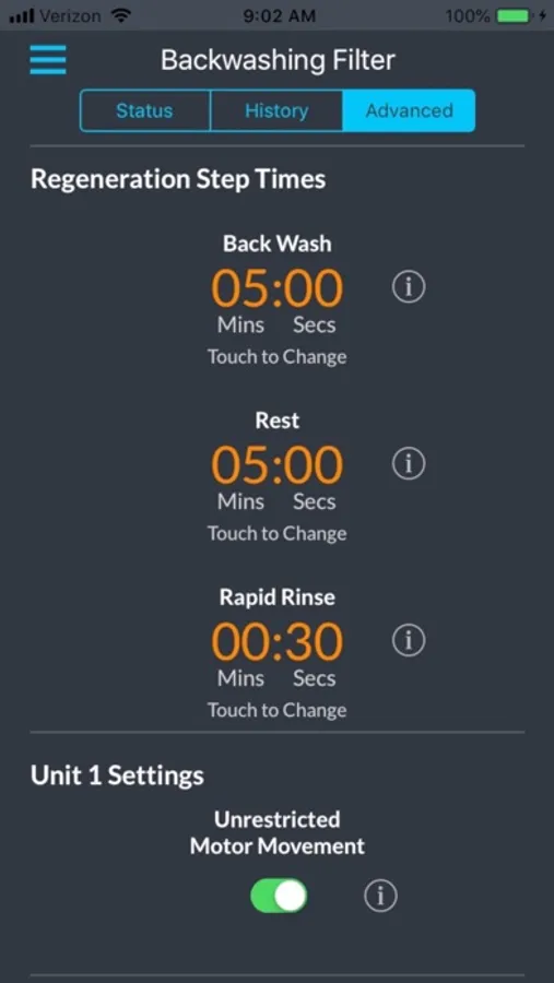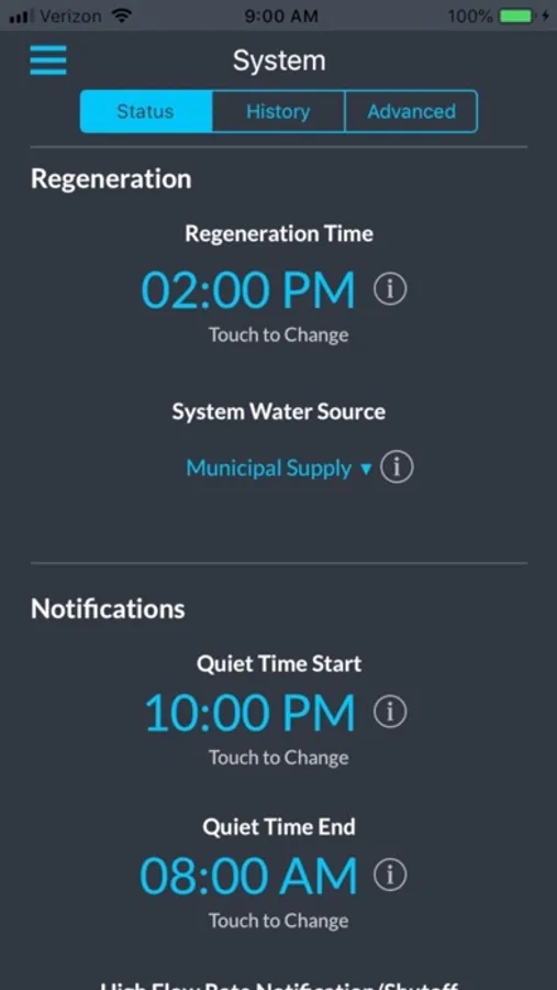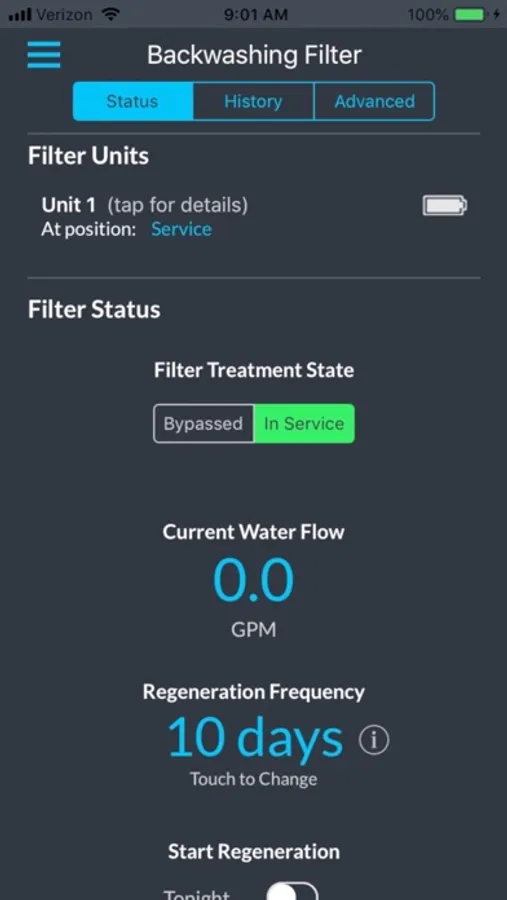 - Start and monitor a regeneration or backwash cycle from your phone or tablet.