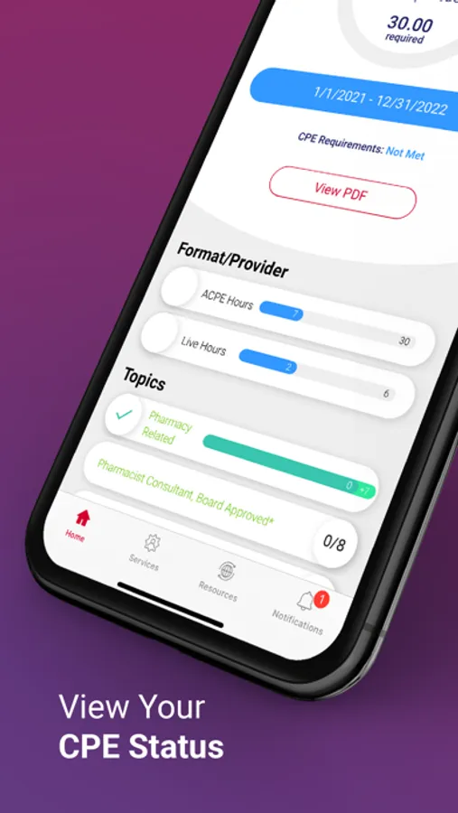The NABP app gives you quick and easy access to your e-Profile and other great tools to support you throughout your pharmacy career. At-a-glance views of your continuing pharmacy education status let you quickly check for license compliance or take a deeper dive into the details of your CPE to check your Accreditation Council for Pharmacy Education-approved CPE claim submissions. Keep up to date on what’s happening in pharmacy regulation and practice news.