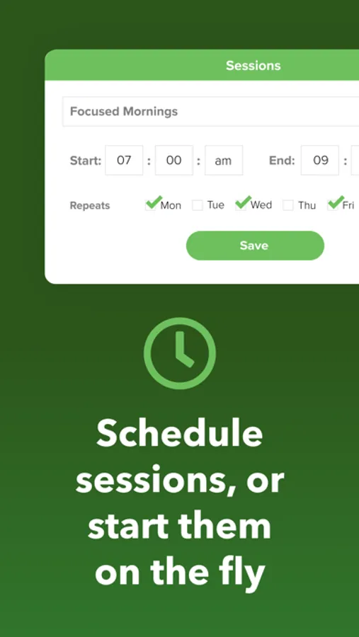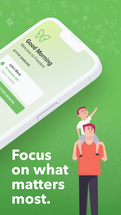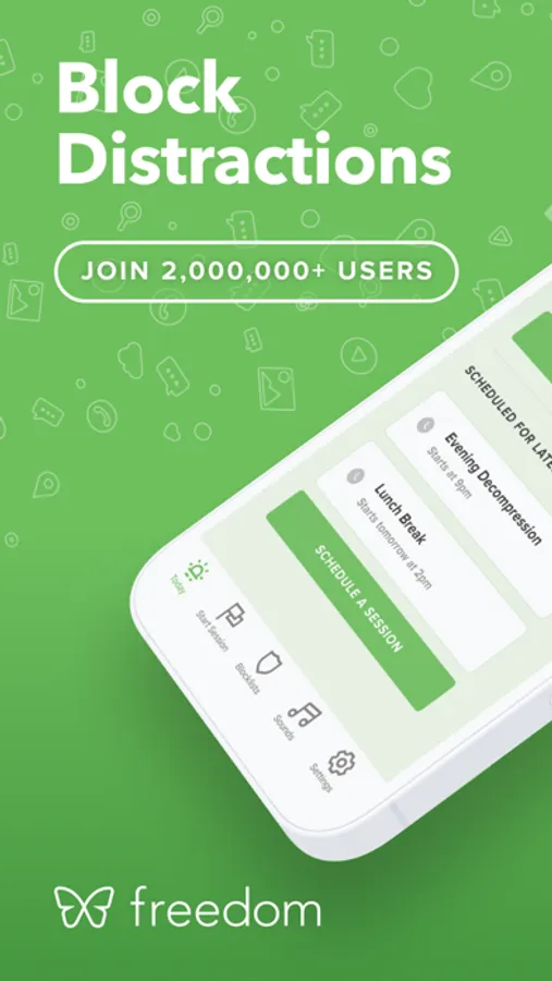 During a Freedom session, when you attempt to open an app or website on your blocklist, Freedom blocks the app from opening and displays a peaceful green screen - reminding you that you're currently free of that distraction. Freedom users report gaining an average of 2.5 hours of productive time every day. They're more fulfilled, happier with work and family life, and have a healthier relationship with their technology.