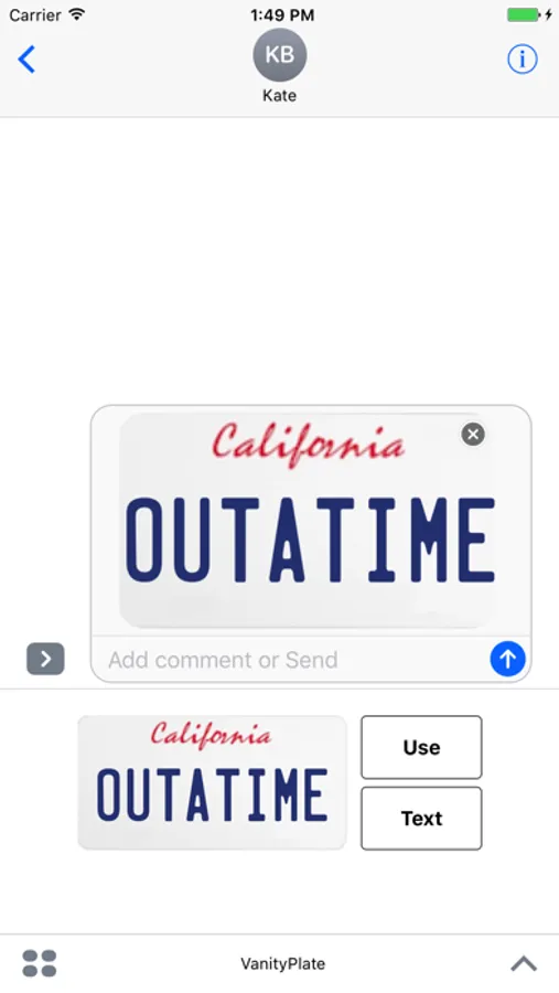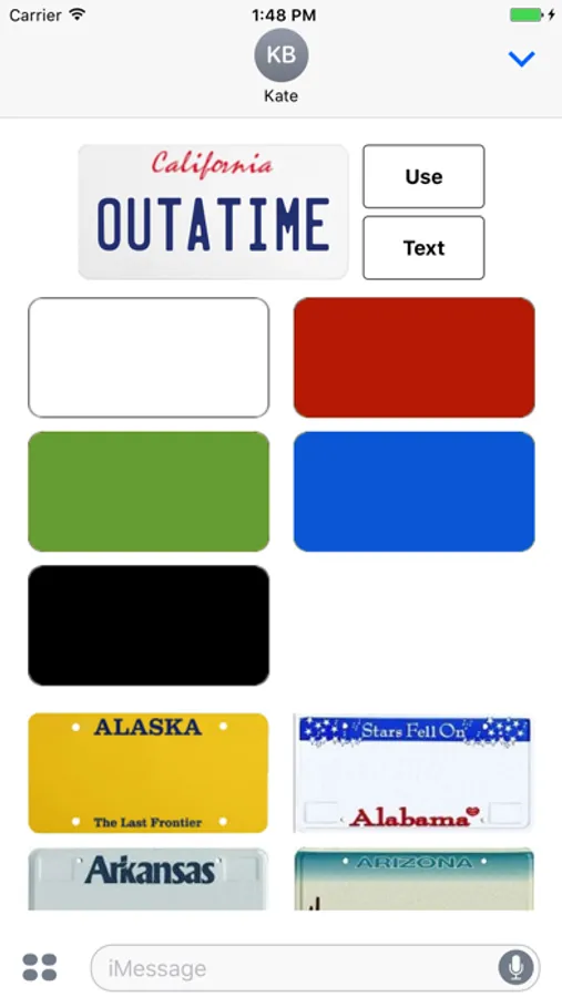 Make your own vanity license plates for iMessage chats. Create and send your own custom personalized plates. You can type whatever you want!