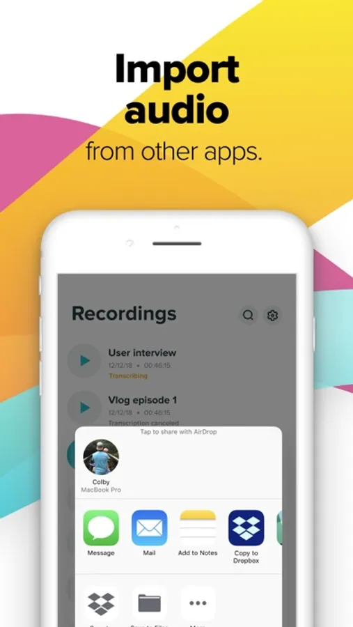 √ Import audio from other apps (Open another app → Share audio → Copy to Temi)