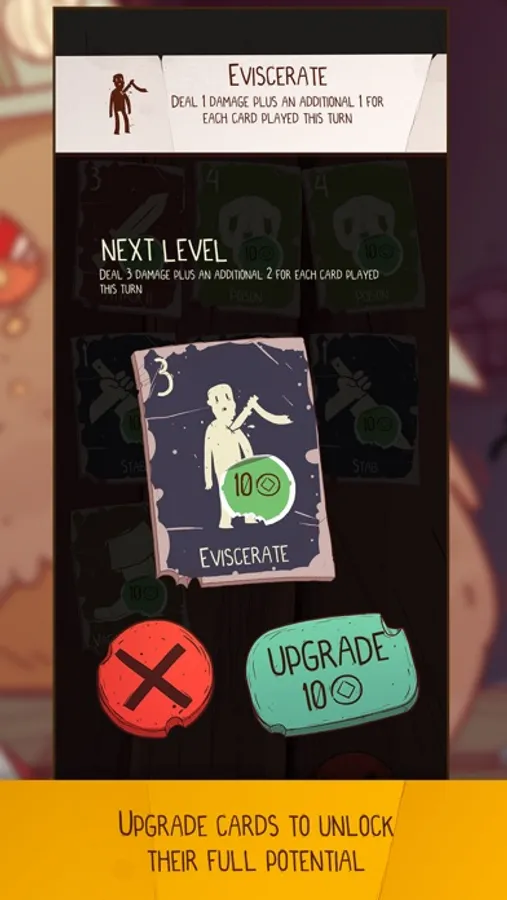 No adventure would be complete without slaying a few monsters that get in your way. In battle, you'll draw cards from your ability deck. Each time you draw a card, you'll be able to swipe right to play the card, or swipe left to skip a turn and regain some stamina.