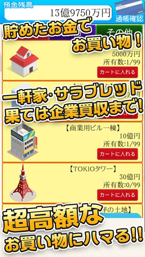 預金口座のお金で回せるガチャはコンプリートする度に、給料がアップ!