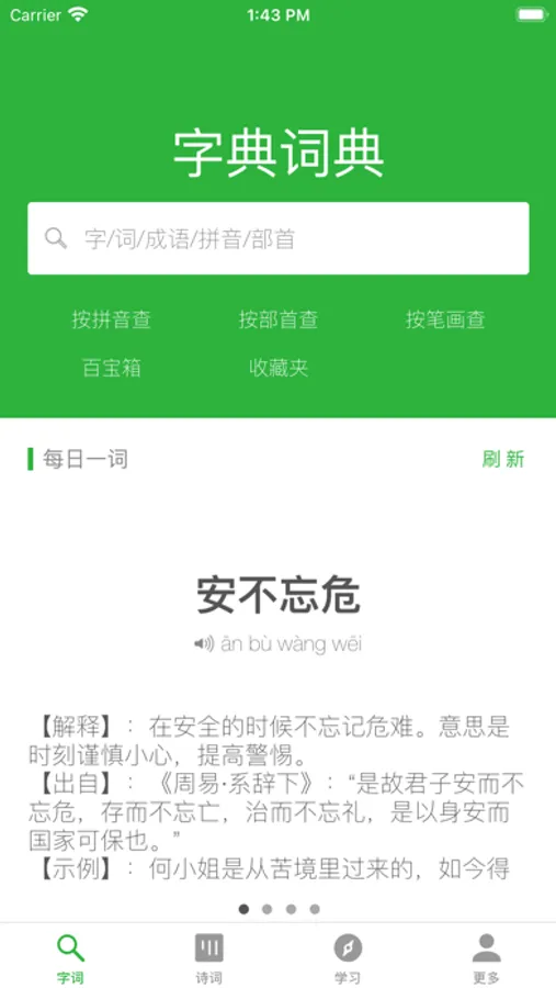 海量汉语词典,包括了汉语所有的词汇,它将是你日常生活和学习重要的工具。词典含简体和繁体,拼音和解释。