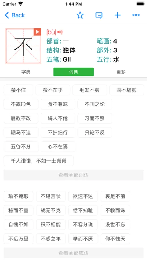 APP包含了汉语字典、汉语词典、成语词典、同义词和反义词、中国历代诗词,经典歇后语,脑筋急转、绕口令、名言名句等10多大版块。