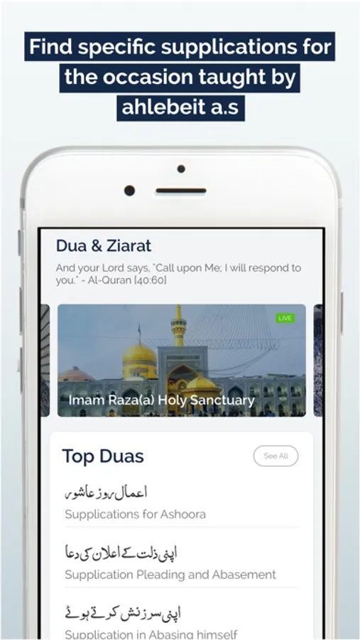 - Find a variety of supplications, ziaraat and munajaaat with their translations in one app.
