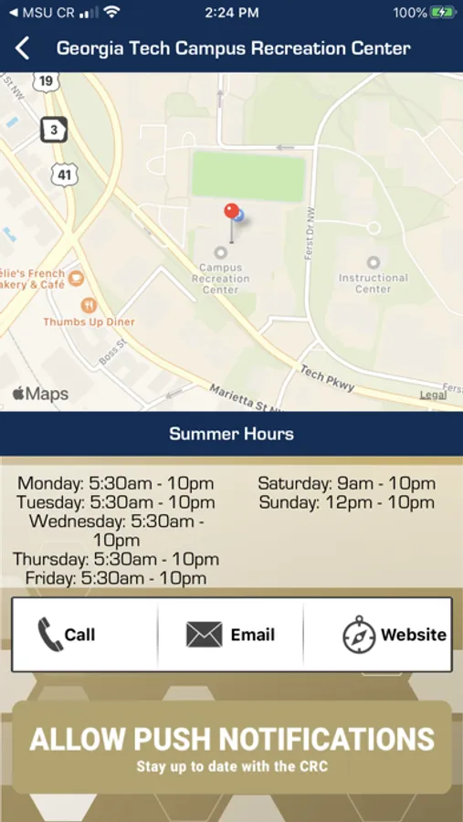 Looking for information on Georgia Tech Campus Recreation programs including fitness, aquatics, intramural, sports clubs and outdoor recreation? You found the right app, CRC Go! Class schedules, facility hours, contact information and more is available on CRC Go. Our goal is to provide the most up-to-date information regarding Campus Recreation at Georgia Tech.