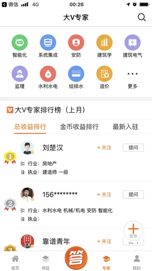 A:可以提问,问各种工程项目信息,你想知道的都可以提问;可以主动分享,分享各种有价值的工程项目信息;可以答题,去回答你知道的题目。