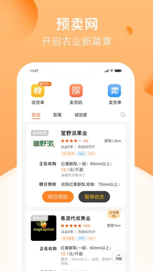 我们是以数据科技为基础,订单农业为方向的农产品供应链技术服务商,致力于把数字时代成熟的科技成果带给每一位新农人,构建高效互联的农产品供应网络。为农产品交易商在供应链前端提供线上交易渠道,