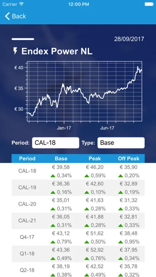 The ENGIE Market Prices app provides insight in the latest gas and power prices of the ICE Endex Energie exchange. End-of-day settlement prices for Endex contracts are published daily and available in the app. As a business consumer, you can monitor energy price developments and decide when to buy; at current market price or when prices start to show upward momentum. This app also allows you to set up price alerts and get notified when prices reach your predefined levels. This way you are always in control of your energy exposure with minimal effort on your part. Via the news page you will be informed about urgent market developments. The ENGIE Market Price app is offered to you by ENGIE Market Desk, part of ENGIE Netherlands N.V.
