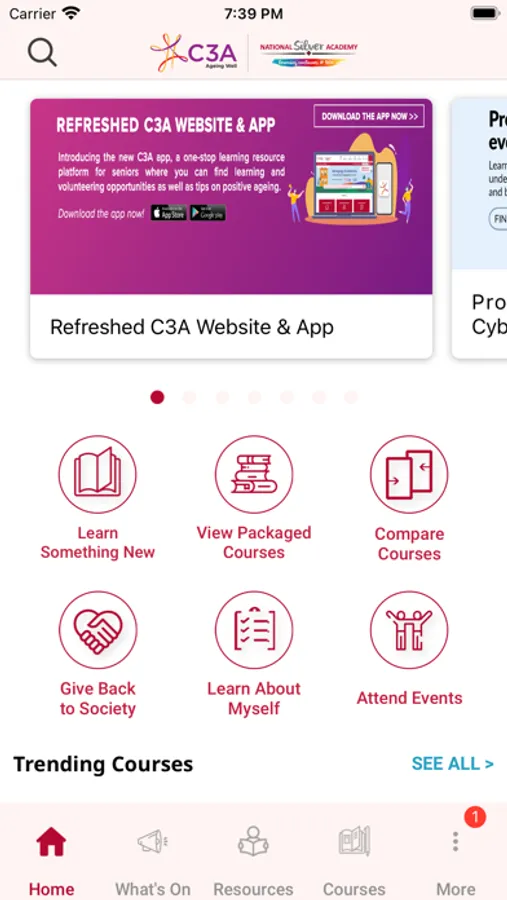 Introducing the new C3A app, a one-stop learning resource platform for seniors where you can find learning and volunteering opportunities as well as tips on positive ageing.