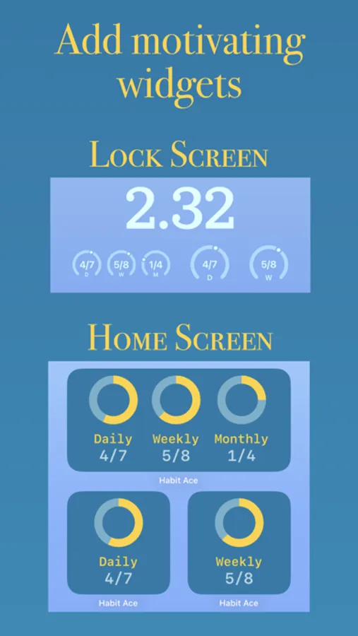 You can view your progress right on your Lock Screen and Home Screen. Feel the satisfaction of seeing completed charts when you have done all your habits.