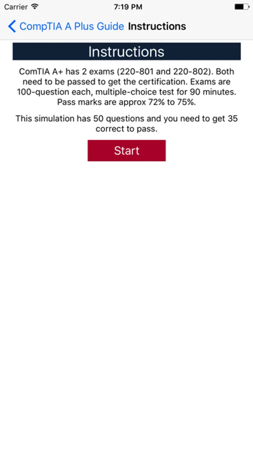 ComTIA A+ has 2 exams (220-801 and 220-802). Both need to be passed to get the certification. Exams are 100-question each, multiple-choice test for 90 minutes. Pass marks are approx 72% to 75%.