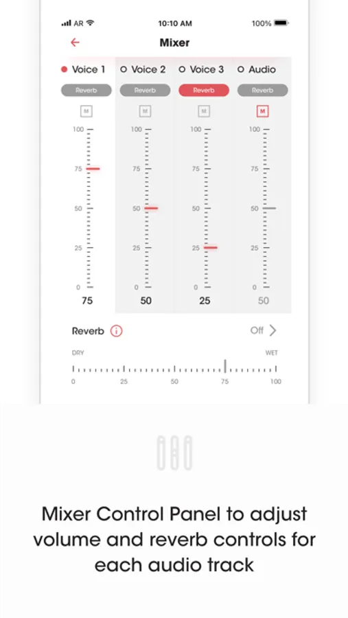 ● Add reverb which can simulate spaces from a small room to a cathedral, and