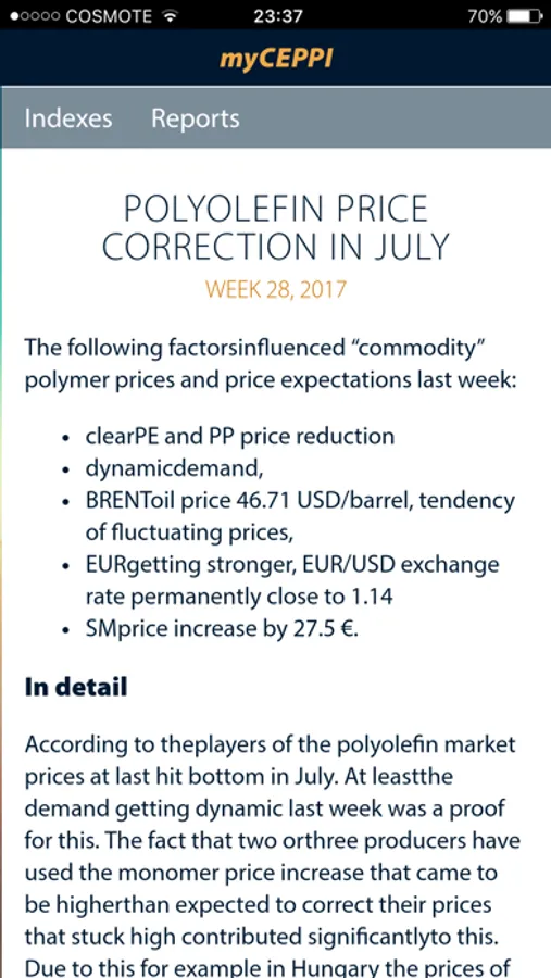The Central European Plastics Price Index (CEPPI) boils down weekly price changes of various commodity plastics on the Central European market into a single all-encompassing price index.