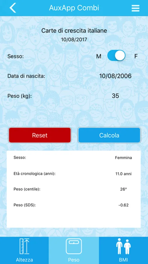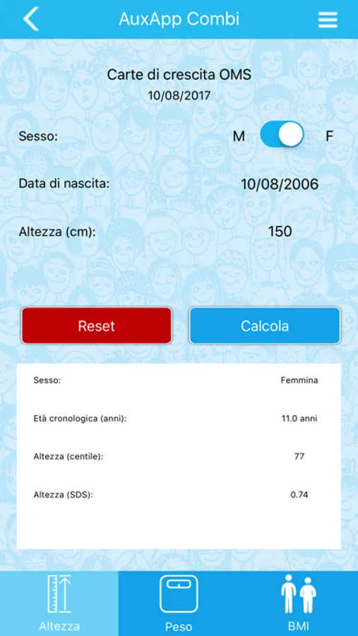 L’applicazione AuxApp Combi permette di calcolare in modo accurato i centili e gli SDS di altezza, peso e indice di massa corporea (BMI) di bambini-e e adolescenti italiani, utilizzando a scelta del medico le carte di crescita Italiane o quelle prodotte dall'OMS. AuxApp Combi consente inoltre di calcolare in modo semplice e preciso la velocità di crescita e l’altezza bersaglio familiare.