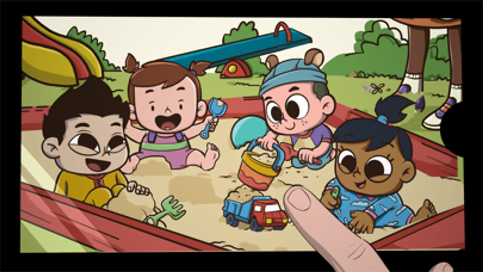 - Aponte a câmera para as páginas do livro que possuem o ícone da Realidade Aumentada.