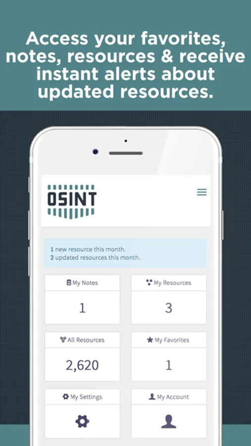 There are also in-app alerts displayed at the top of the home screen when new resources have been added or updated, providing you with the most up-to-date open source intelligence information available.