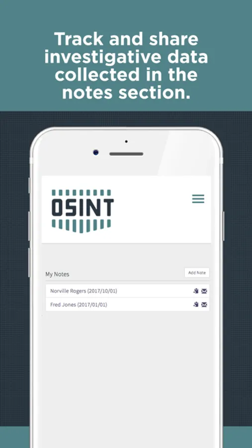 The app has a thorough “Notes” section in which you can track information relevant to multiple investigation a once. You can then share the information by emailing it to others. You can also easily coping the data to be pasted into other apps.