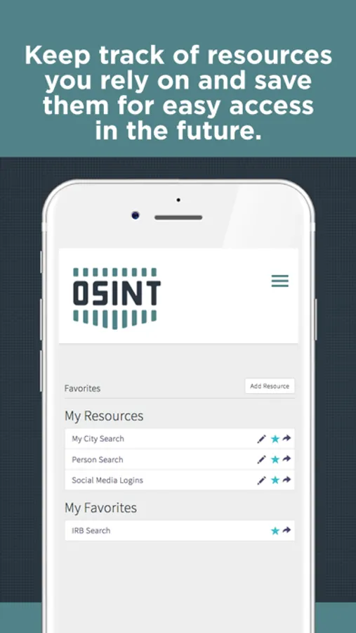 In “My Resources” you can add your own resources into the app for future reference.