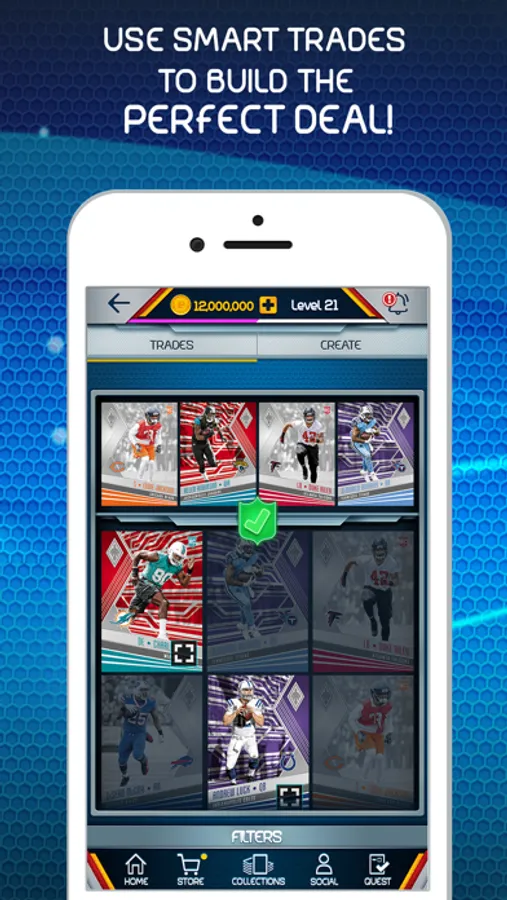 Chat with, browse inventories, make offers, and trade with NFL fans from around the globe. Trade up to 9 cards at a time to collect your favorite players, complete sets, acquire rare cards, or build your ultimate contest lineup.
