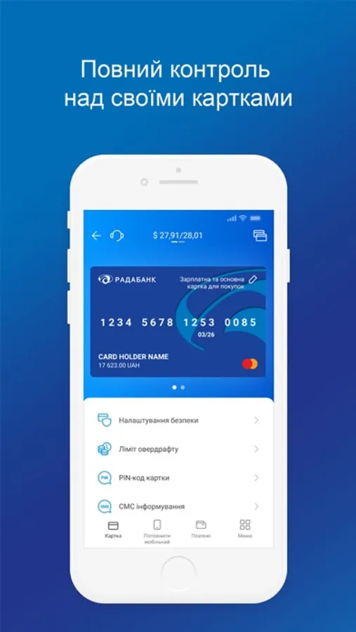 • Керуйте своїми картами (блокування, установка лімітів, обмеження на операції в інших країнах);