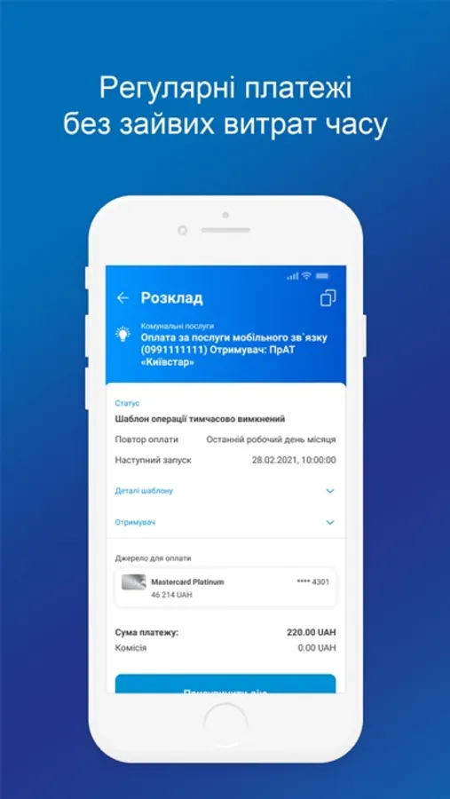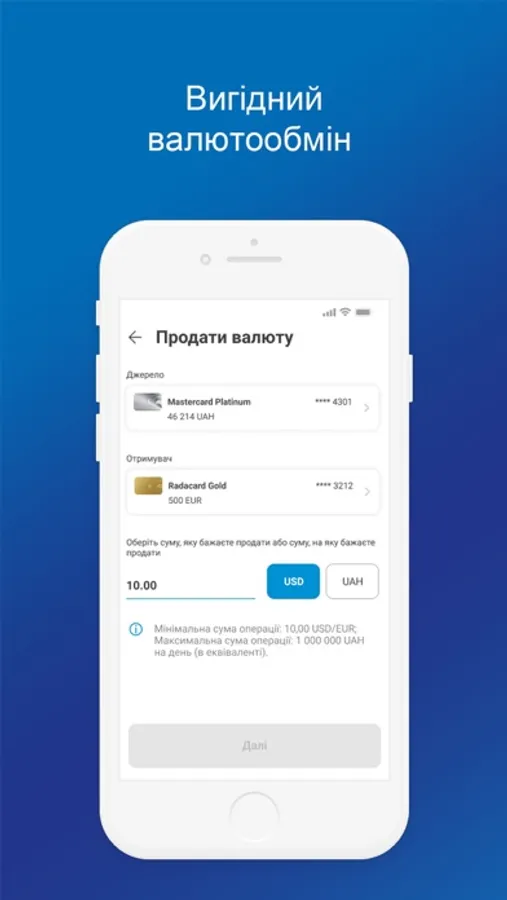• Переглядайте баланс і формуйте виписки за Вашими рахунками і картами;