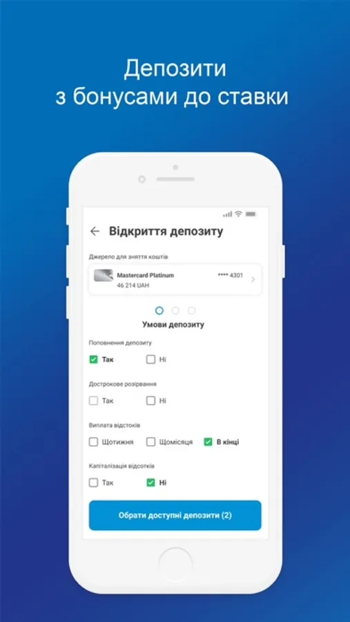 • Отримайте бонус + 0,5% до ставки при оформленні депозитів;