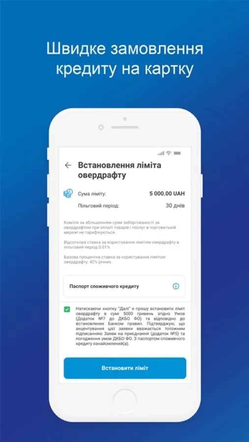 • ДОСТУП ДО КАМЕРИ - використовується для відправлення фотокопій документів в банк.